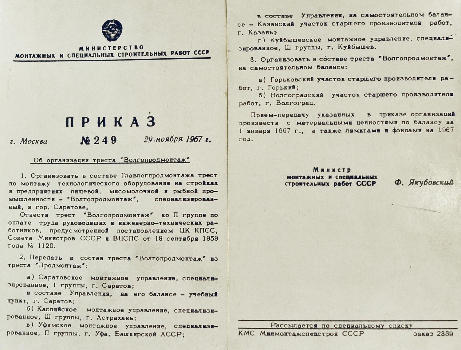 Трест ВОЛГОПРОДМОНТАЖ принимал участие в строительстве ключевых объектов страны: